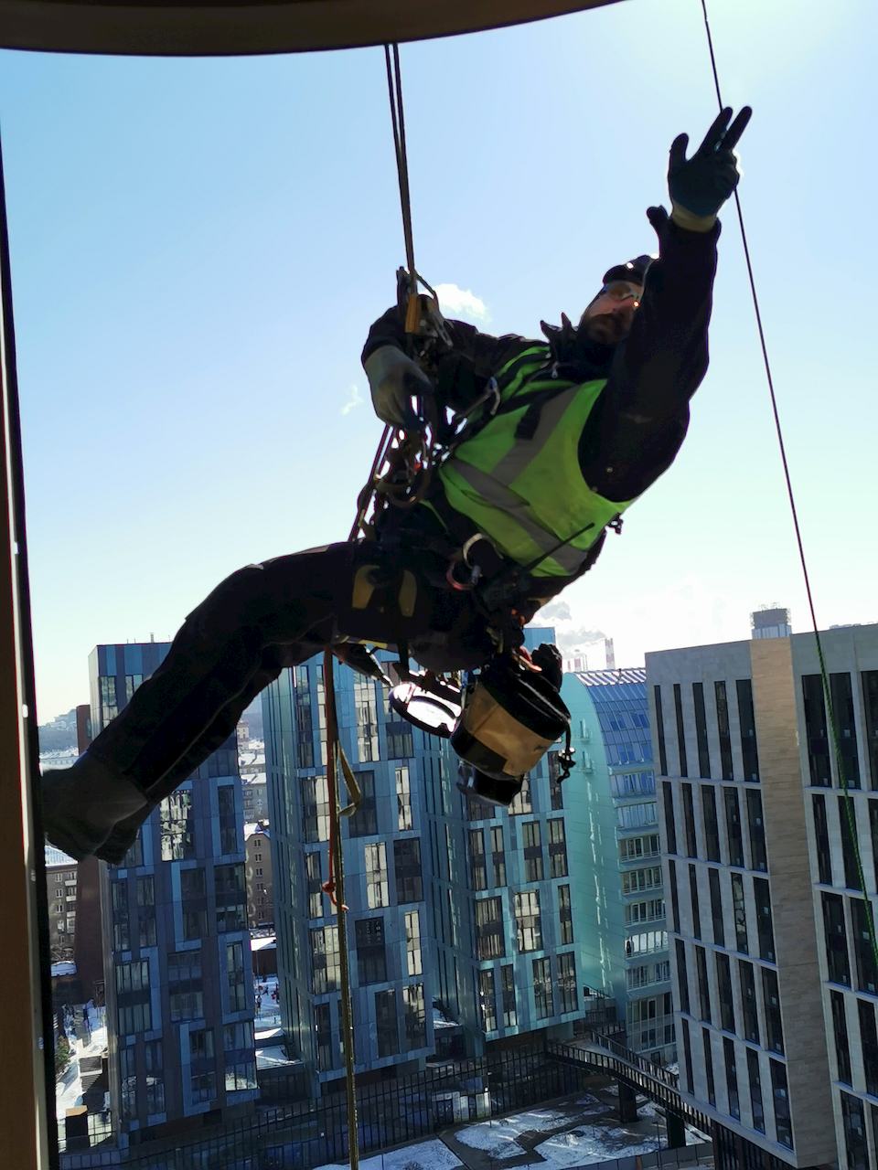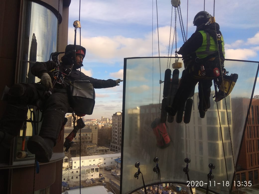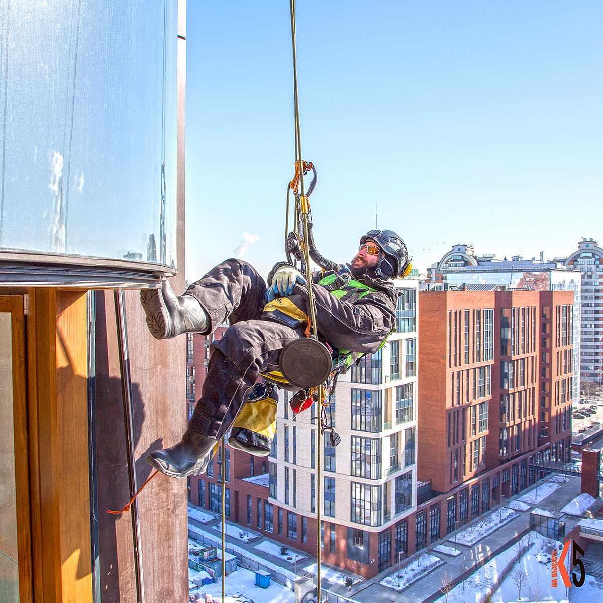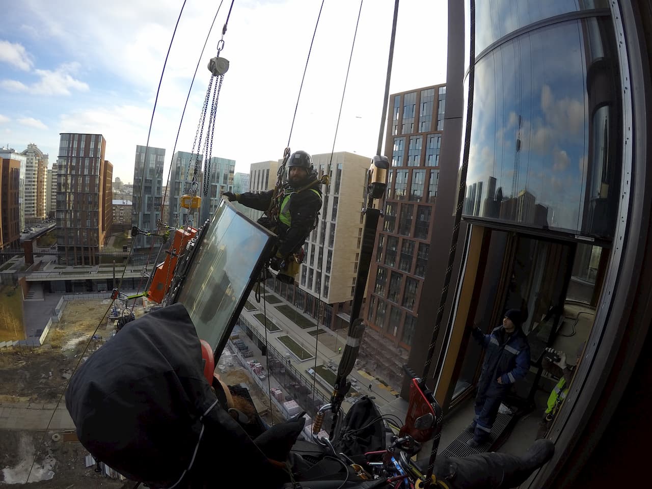 Начиная с 2018 года мы производим монтаж и замену малированных стеклопакетов на ЖК “Садовые кварталы” по средствам канатного доступа. Всем известно что стекло очень хрупкий материал, с которым надо быть предельно осторожным. Часто бывает что радиус проема и радиус стеклопакета не совпадают, наш опыт позволяет совместить радиусы без повреждений и аккуратно позиционировать изделие в проектное положение. Благодаря слаженной работе команды и сертифицированному оборудованию все монтажи и подъемы прошли успешно.