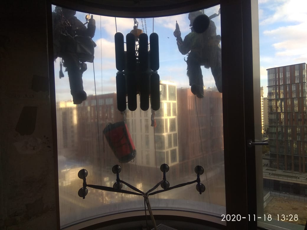 Монтаж малированных (радиусных) стеклопакетов на ЖК “Садовые кварталы”