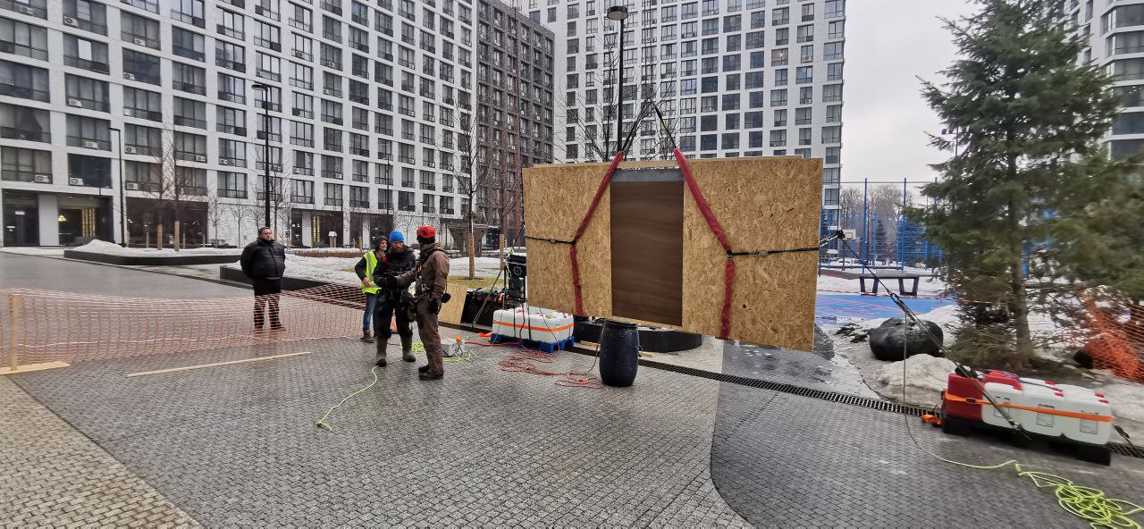 Команда промышленных альпинистов К5 успешно выполнила комплекс работ по подъёму и перемещению плит керамогранита для интерьерных решений в жилом комплексе «Кутузовский».