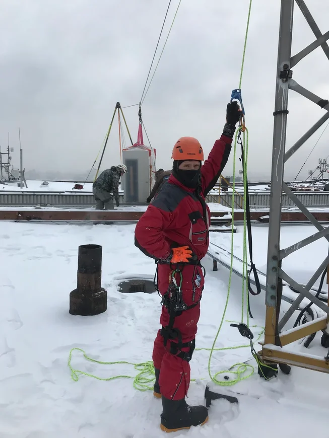 Работа была нестандартная, интересная, на крыше устанавливали шевру, и организовывали переправу из стального троса, вес одной установки составлял 300 килограммов.
