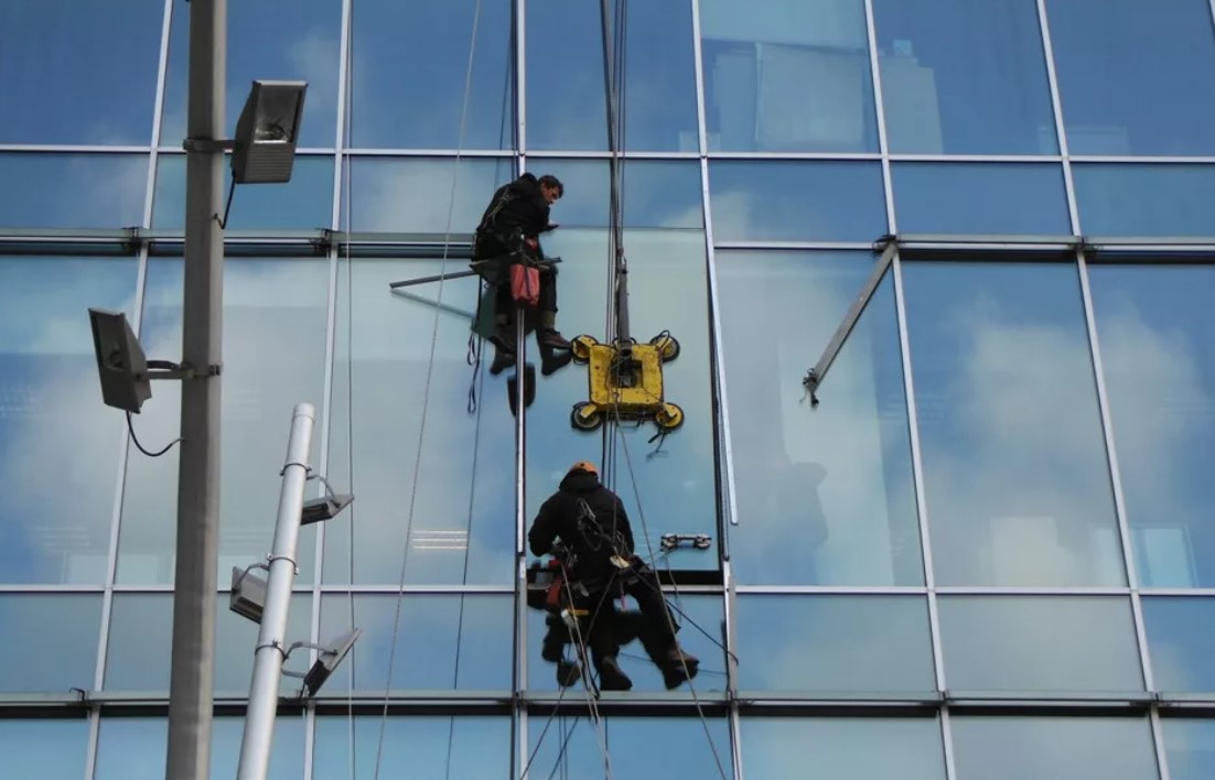 Наши альпинисты способны выполнить монтаж стеклопакетов любой сложности. Стекло – тяжелый, хрупкий и опасный груз, который необходимо максимально осторожно доставить к месту и установить в проем. Для этого мы располагаем всем необходимым альпинистским снаряжением, специальным инструментом, в том числе профессиональными присосками для стекла и многим другим.